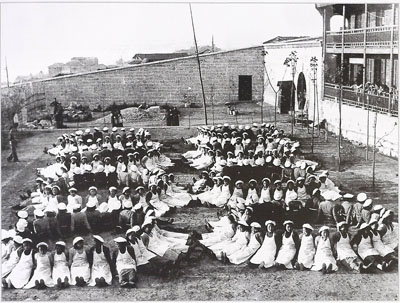图为:重庆裕华纱厂在1940年8月两度被炸,全部厂房被炸毁。1941年8月裕华再度被炸,损失惨重。但全厂职工没有屈服,他们随炸随建,不到两个月时间又恢复了生产  图为1941年裕华纱厂女工在厂内空地上做团体操。