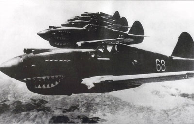 1941年8月,一支由美国战斗机组成的援华义师陈纳德“飞虎队”进入中国领空,参加对日作战。图为“飞虎队”编队出发,袭击日机。